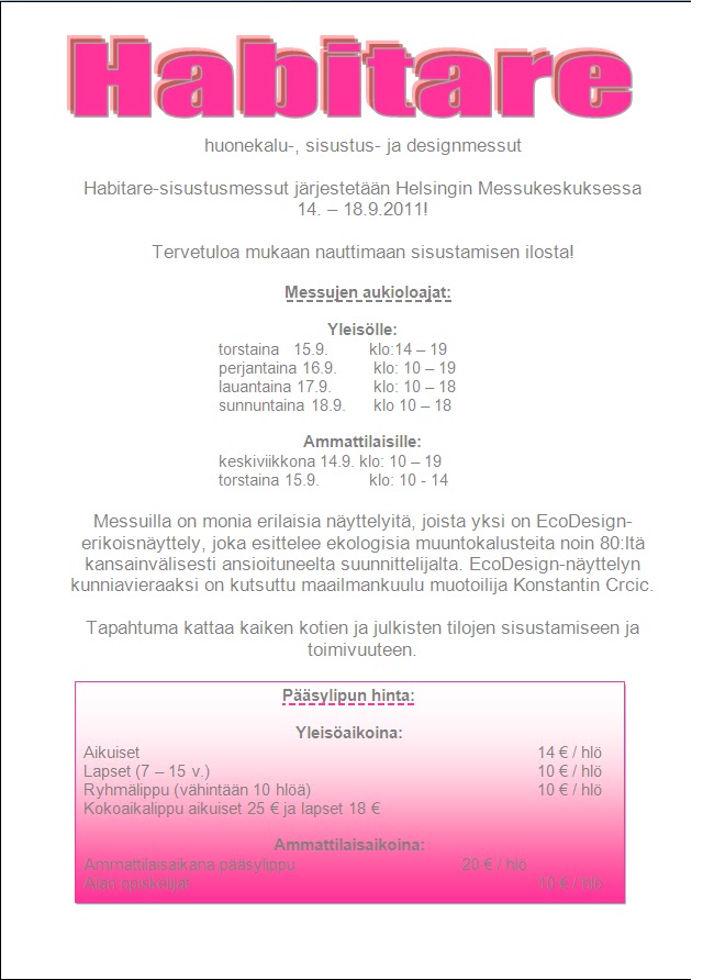 - Habitare-sisustusmessut Helsingin Messukeskuksessa